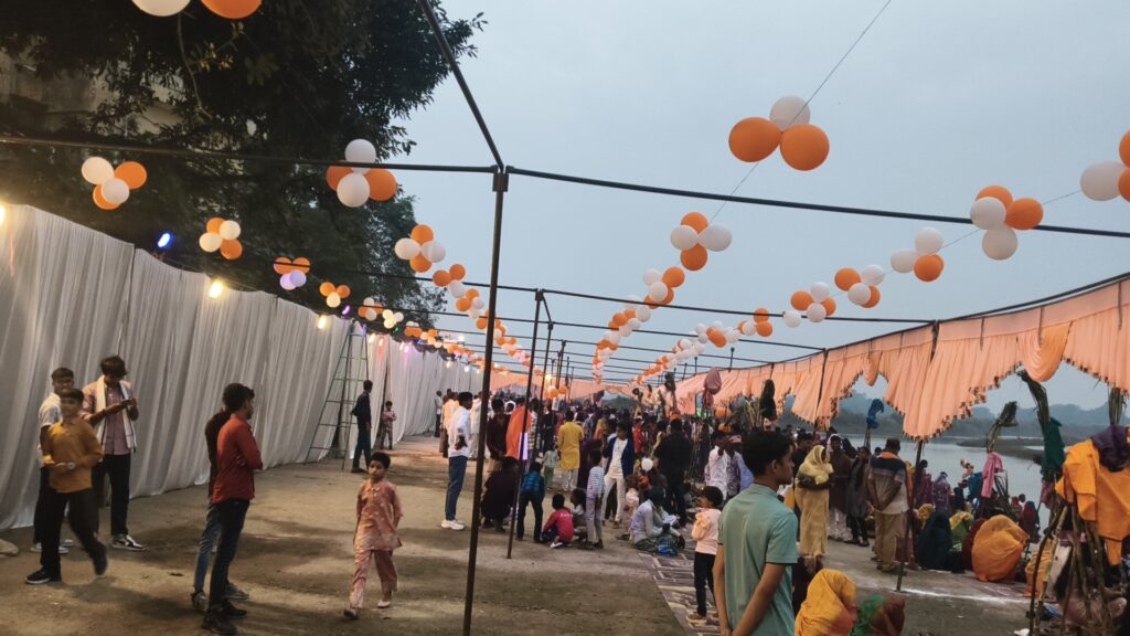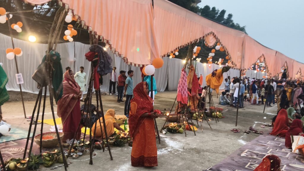 बलिया। नगर पंचायत चितबड़ागांव में छठ महापर्व की धार्मिक आस्था और उत्साह का अनोखा संगम देखने को मिला। सोमवार को नगर पंचायत क्षेत्र के टोंस नदी स्थित शास्त्री नगर घाट, महावीर घाट, बरैया पोखरा, गुदरी पोखरा और रामशाला परिसर सहित विभिन्न स्थानों पर छठ मईया की प्रतिमाएं स्थापित की गईं। सभी स्थानों पर भक्तों की भारी भीड़ उमड़ी। नगर पंचायत चेयरमैन अमरजीत सिंह ने विधिवत पूजा-अर्चना कर छठ मईया की प्रतिमाओं का मुख उद्घाटन किया।मुख उद्घाटन के अवसर पर चेयरमैन अमरजीत सिंह ने कहा छठ महापर्व लोक आस्था का अद्भुत उत्सव है, जो स्वच्छता, संयम और सूर्योपासना का प्रतीक है। नगर पंचायत प्रशासन ने श्रद्धालुओं की सुविधा को ध्यान में रखते हुए सभी घाटों पर साफ-सफाई, प्रकाश व्यवस्था, बैरिकेडिंग, पेयजल और सुरक्षा की विशेष व्यवस्था की है। हमारा उद्देश्य है कि हर श्रद्धालु निर्बाध रूप से छठ मईया की आराधना कर सके।”उन्होंने आगे कहा कि नगर पंचायत चितबड़ागांव की पहचान अब स्वच्छ और धार्मिक नगर के रूप में बन रही है। नगर पंचायत परिवार की ओर से उन्होंने सभी नगरवासियों को छठ पर्व की शुभकामनाएं दीं कार्यक्रम में नगर पंचायत के अधिकारी, सभासद, कर्मचारी, समाजसेवी एवं बड़ी संख्या में श्रद्धालु मौजूद रहे। घाटों पर चारों ओर “छठ मईया के जयकारों” से वातावरण भक्तिमय बना रहा। महिलाएं गीत गातीं और सूर्य उपासना की तैयारी में जुटी रहीं पूरे नगर में छठ महापर्व की तैयारी को लेकर उल्लास का वातावरण व्याप्त है। नगर पंचायत की टीम लगातार घाटों की निगरानी कर रही है ताकि किसी भी श्रद्धालु को कोई परेशानी न हो। चेयरमैन अमरजीत सिंह के नेतृत्व में चितबड़ागांव में इस वर्ष का छठ पर्व भव्यता और स्वच्छता का मिसाल बनने जा रहा है।