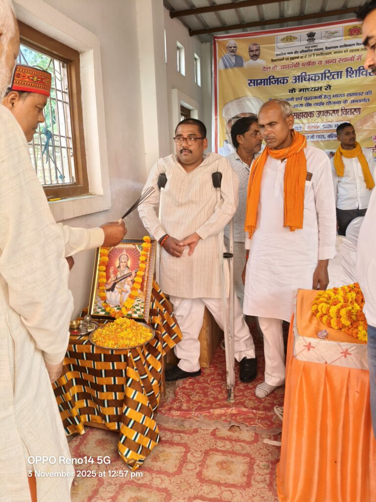बलिया। ग्राम पंचायत कारों में सोमवार को राष्ट्रीय वयोश्री योजना के अंतर्गत 130 दिव्यांगजन एवं वृद्धजन को निःशुल्क सहायक उपकरण वितरित किए गए। कार्यक्रम का आयोजन युवा समाजसेवी अभिषेक उपाध्याय के नेतृत्व में समाज कल्याण विभाग द्वारा करो टैंकर के पास किया गया।कार्यक्रम के मुख्य अतिथि भाजपा मंडल अध्यक्ष मोतीचंद गुप्ता एवं विशिष्ट अतिथि ब्लॉक प्रधान संघ अध्यक्ष राजू सिंह और दीपक सिंह रहे। मां सरस्वती के चित्र पर माल्यार्पण और दीप प्रज्ज्वलन कर कार्यक्रम का शुभारंभ किया गया। आयोजक अभिषेक उपाध्याय ने सभी अतिथियों का अंगवस्त्र और माल्यार्पण कर सम्मान किया।इस अवसर पर लाभार्थियों को ADIP और RVY योजना के तहत उपकरण प्रदान किए गए। लाभार्थियों में 107 वर्षीय कैलाशी देवी, पंचरत्न राजभर, जनार्दन राजभर, कामता वर्मा, वीरेंद्र राम सहित 130 लोगों को उपकरण दिए गए।कार्यक्रम में सहयोग देवशरण चौहान, राम इकबाल वर्मा, विनोद सिंह, प्रदीप उपाध्याय, दीपमणी उपाध्याय, आशु उपाध्याय एवं भीम राजभर आदि का रहा। मंच संचालन शशिकांत उपाध्याय ने किया।ग्रामीणों ने इस पहल की सराहना करते हुए कहा कि ऐसे आयोजन समाज के कमजोर वर्गों के जीवन में नई उम्मीद जगाते हैं।