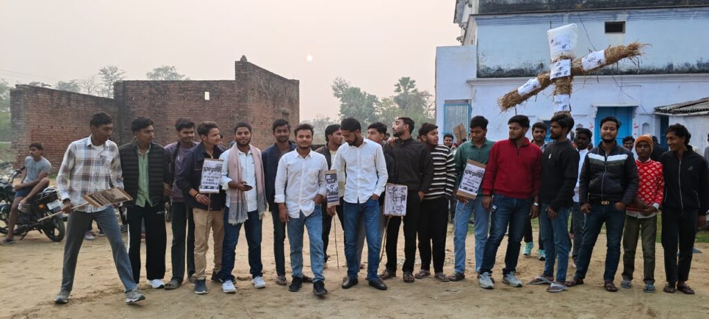 बलिया।चितबड़ागांव के नौजवान ने सर्वण छात्रों पर थोपे गए यूजीसी के काले कानून के विरोध में बुधवार को चितबड़ागांव में छात्रों का उग्र आक्रोश देखने को मिला। शिवम सिंह के नेतृत्व में सैकड़ों छात्रों ने शहीद वृन्दावन तिवारी स्मारक से विरोध मार्च निकाला, जो पीसीओ तिराहा तक पहुंचा।मार्च के दौरान छात्रों ने केंद्र की मोदी सरकार के खिलाफ जमकर नारेबाजी की और यूजीसी के काले कानून को तत्काल वापस लेने की मांग की। पीसीओ तिराहा पर पहुंचकर छात्रों ने प्रतीकात्मक रूप से पुतला दहन कर अपना विरोध दर्ज कराया।प्रदर्शनकारियों ने कहा कि यूजीसी का यह कानून सर्वण छात्रों के भविष्य के साथ अन्याय है और इसे किसी भी स्थिति में स्वीकार नहीं किया जाएगा। छात्रों ने चेतावनी दी कि यदि काला कानून वापस नहीं लिया गया तो आंदोलन को और तेज किया जाएगा।