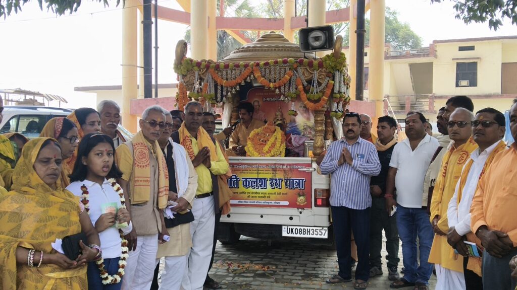 चितबड़ागांव में गूंजा आध्यात्मिक उत्साहपावन ज्योति दिव्य कलश यात्रा का मंत्रोच्चारण के बीच भव्य स्वागतचितबड़ागांव। परम पूज्य गुरुदेव की प्रेरणा से अखिल विश्व गायत्री परिवार, शांतिकुंज हरिद्वार द्वारा निकाली गई पावन ज्योति दिव्य कलश यात्रा शुक्रवार प्रातः लगभग 9:00 बजे आदर्श नगर पंचायत चितबड़ागांव पहुंची, जहां नगरवासियों ने मंत्रोच्चारण के बीच यात्रा का भव्य स्वागत किया।इस दौरान दिव्य कलश का विधिवत पूजन क्षेत्रीय गायत्री परिजनों एवं नगर पंचायत अध्यक्ष अमरजीत सिंह के करकमलों द्वारा संपन्न हुआ। कार्यक्रम में शांतिकुंज से पधारे गायत्री परिवार के मनीषियों ने भारतीय संस्कृति, नैतिक जागरण एवं युग परिवर्तन के संदेश को विस्तारपूर्वक उपस्थित जनसमूह के समक्ष रखा।उन्होंने बताया कि यह दिव्य कलश साधारण नहीं, बल्कि आध्यात्मिक ऊर्जा से परिपूर्ण है, जिसका दर्शन सौभाग्य से ही संभव होता है। यह कलश विश्व के विभिन्न देशों में भ्रमण करते हुए गुरुदेव के विचारों एवं सांस्कृतिक चेतना का संदेश प्रसारित कर रहा है।यात्रा के साथ गायत्री शक्तिपीठ महावीर घाट के प्रभारी वीरेंद्र नाथ चौबे भी उपस्थित रहे।इस अवसर पर नगर पंचायत अध्यक्ष अमरजीत सिंह, गायत्री परिवार की वरिष्ठ परिजन श्रीमती उषा दीदी, विनोद शंकर गुप्ता, डॉ. श्रीकृष्ण यादव, फागु प्रसाद, भारत गुप्ता, अरविंद तिवारी, सत्येंद्र सिंह, श्री प्रकाश तिवारी, लक्ष्मण गुप्ता, शशांक सिंह, श्रीकृष्ण केसरी, शंभू सिंह, धीरेंद्र प्रसाद सहित अनेक गणमान्य नागरिक मौजूद रहे।