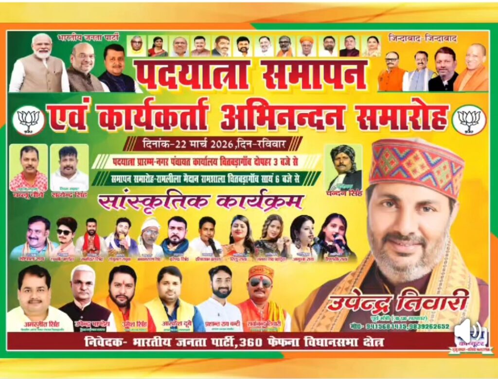 बलिया (चितबड़ागांव)। फेफना विधानसभा क्षेत्र में जनसंपर्क और जनसमर्थन को सुदृढ़ करने के उद्देश्य से आयोजित पदयात्रा के सफल समापन के उपलक्ष्य में 22 मार्च 2026 (रविवार) को भव्य कार्यकर्ता अभिनन्दन समारोह का आयोजन किया जाएगा। कार्यक्रम को लेकर क्षेत्र में उत्साह का माहौल है और बड़ी संख्या में कार्यकर्ताओं व आमजन की भागीदारी की संभावना जताई जा रही है।प्राप्त जानकारी के अनुसार पदयात्रा का शुभारंभ नगर पंचायत कार्यालय चितबड़ागांव से दोपहर 3 बजे किया जाएगा, जो विभिन्न मार्गों से होकर गुजरते हुए सायं 6 बजे रामलीला मैदान पहुंचेगी। यहीं पर पदयात्रा का समापन एवं कार्यकर्ता अभिनन्दन समारोह आयोजित होगा।इस अवसर पर क्षेत्र के वरिष्ठ नेता, जनप्रतिनिधि एवं हजारों कार्यकर्ता अपनी गरिमामयी उपस्थिति दर्ज करेंगे। कार्यक्रम को भव्य और यादगार बनाने के लिए विशेष सांस्कृतिक संध्या का भी आयोजन किया गया है, जिसमें भोजपुरी जगत के चर्चित कलाकार अपनी प्रस्तुतियों से समा बांधेंगे।कार्यक्रम में गोपाल राय, सन्नी पांडे, मनोहर सिंह, सोनू लाल संधूआ, अभय नारायण सिंह, हरेंद्र सिंह, हरिनारायण हलचल, रितु राय, अलका सिंह पहाड़िया, अनुभा राय एवं वैष्णवी राय जैसे कलाकारों की प्रस्तुति मुख्य आकर्षण का केंद्र रहेगी।आयोजकों ने क्षेत्र के अधिक से अधिक कार्यकर्ताओं एवं आमजन से कार्यक्रम में पहुंचकर इसे सफल बनाने की अपील की है।