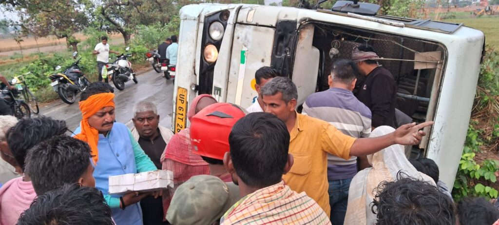 चितबड़ागांव। बलिया-गाजीपुर मार्ग पर शनिवार शाम करीब 5:30 बजे यात्रियों से भरी नफीस बस पटसार (सुजायत) गांव के पास अनियंत्रित होकर सड़क किनारे पलट गई। घटना के बाद मौके पर अफरा-तफरी मच गई और यात्रियों में चीख-पुकार शुरू हो गई।