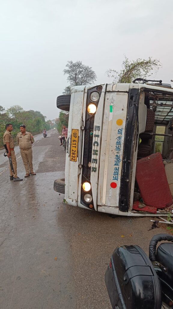 सूचना मिलते ही पुलिस व प्रशासनिक टीम मौके पर पहुंची और स्थिति का जायजा लिया। थानाध्यक्ष बृजेश सिंह ने बताया कि घटना में एक महिला को हल्की चोट आई है, जबकि अन्य सभी यात्री सुरक्षित हैं। मौके पर शांति व्यवस्था कायम है और आवश्यक कार्रवाई की जा रही है।